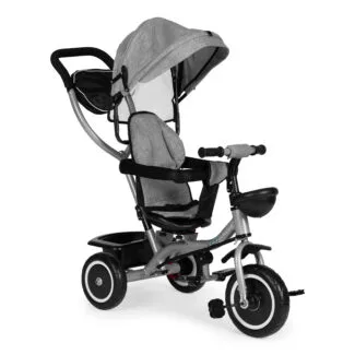 Trójkołowy rowerek spacerówka 2w1 obracane siedzisko składany daszek szary ECOTOYS