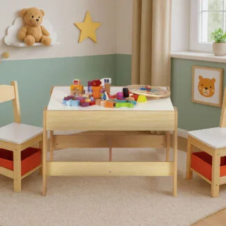 • Designerskie meble: Ergonomiczne krzesła, biurka z regulacją wysokości, które rosną razem z dzieckiem i wspierają jego prawidłowy rozwój postawy.