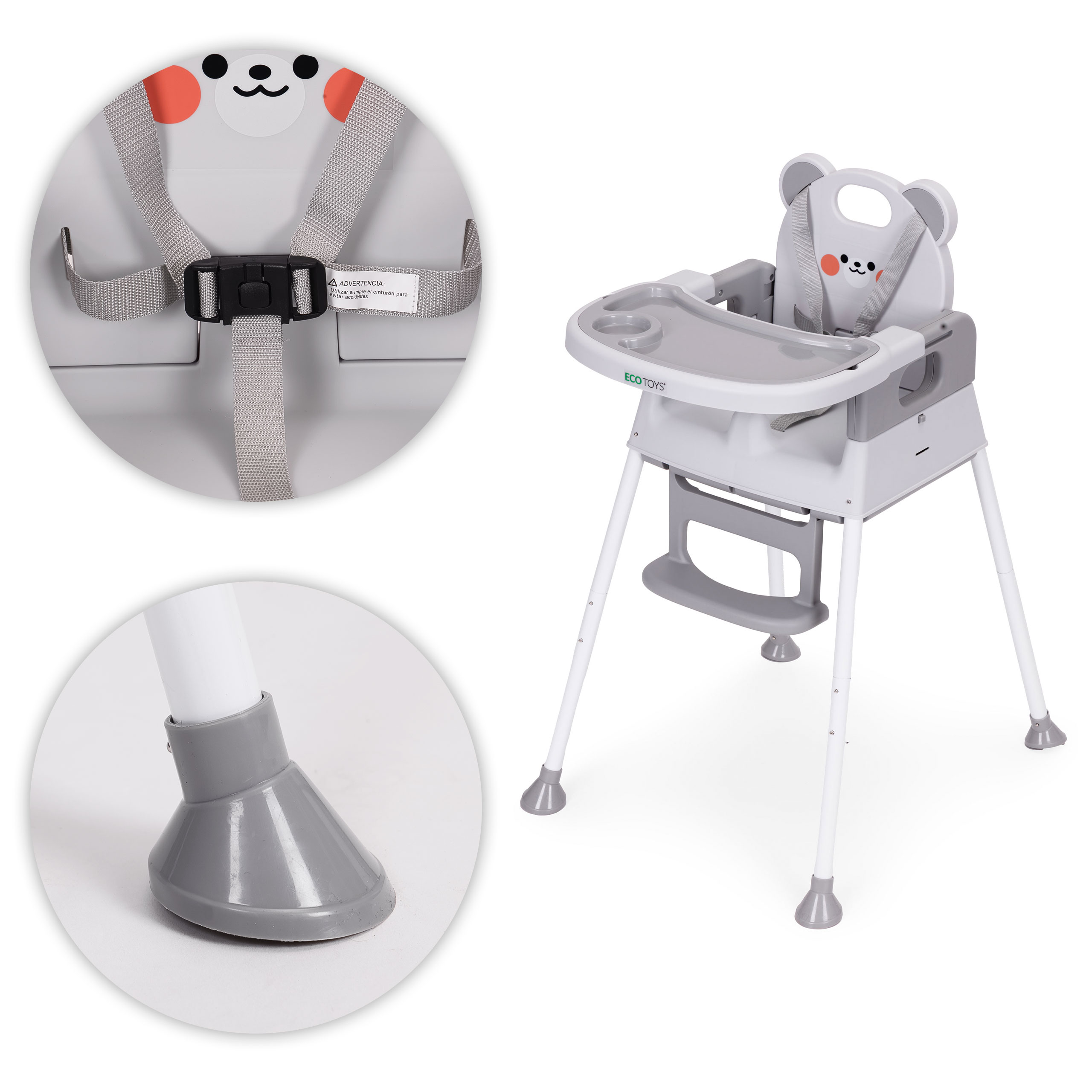 Krzesełko do karmienia dzieci 3w1 szary ECOTOYS to doskonałe połączenie funkcjonalności, designu i bezpieczeństwa.