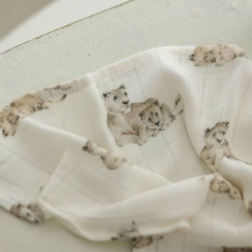 Wysokiej jakości bambusowa pieluszka muślinowa lionsWyróżnia się przyjemną i delikatną w dotyku strukturą. Idealna już od pierwszych dni życia dziecka, sprawdzi się również u dzieci z problemami skórnymi. Dodatkowo muślin bambusowy posiada właściwości termoregulacyjne – zapobiega przegrzaniu i utrzymuje komfort cieplny.