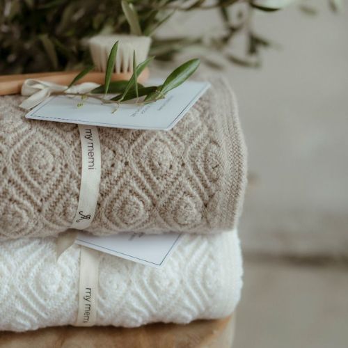Kocyk Pearl warm beige ze 100% wełny merino – MY MEMI