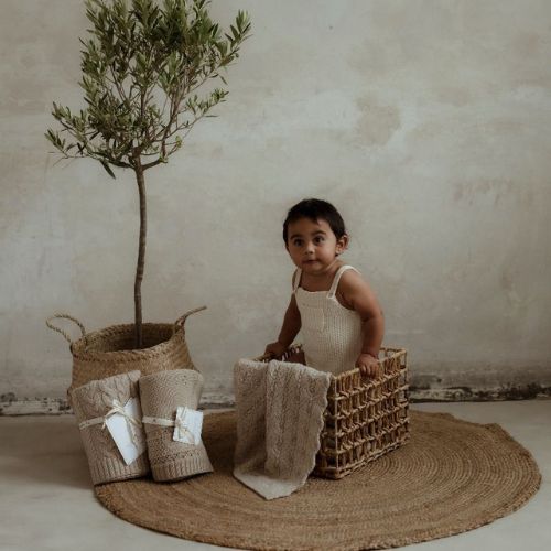 Szlachetny kolor warm beige (ciepły  beż) sprawia, że kocyk jest uniwersalny i doskonale komponuje się zarówno z wyprawką chłopięcą, jak i dziewczęcą. To połączenie elegancji, funkcjonalności i ekologii – produkt powstał w Polsce, a do jego pakowania użyto bawełnianego woreczka wielokrotnego użytku.