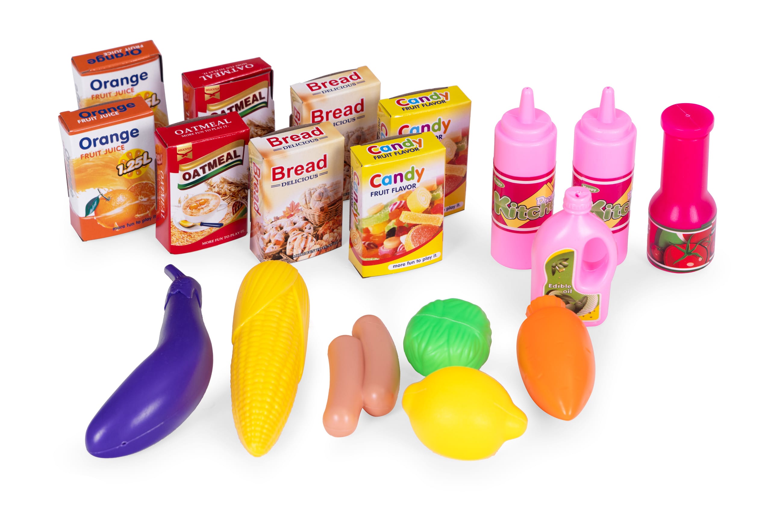 - Bogaty zestaw akcesoriów – aż 18 produktów spożywczych w zestawie.