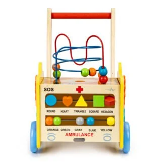 • Sorter kształtów  z drewnianymi klockami, który uczy rozpoznawania kształtów i kolorów.