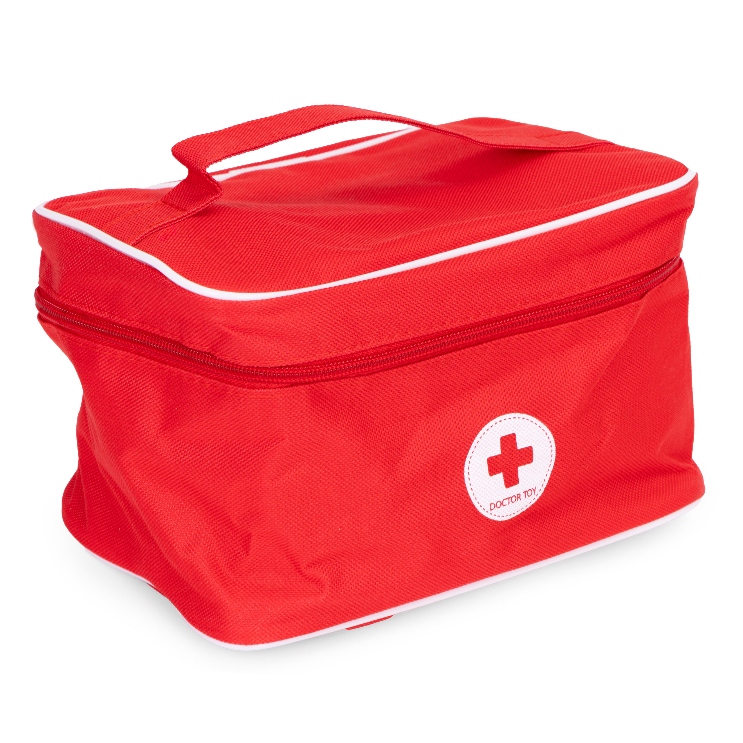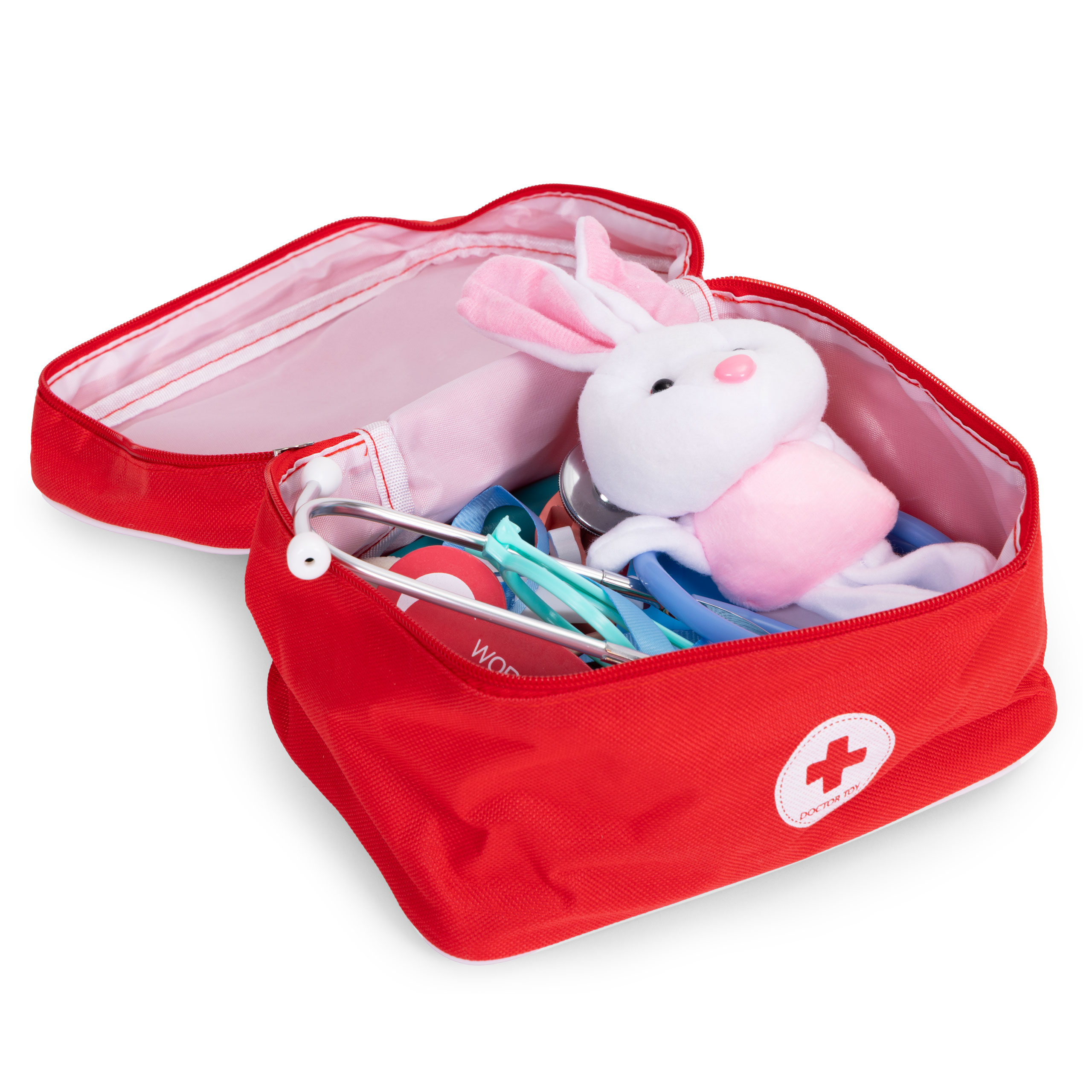 Każdy maluch znajdzie tu coś dla siebie. Oprócz podstawowych narzędzi medycznych, w zestawie znajdują się także akcesoria dentystyczne, zabawkowe lekarstwa, bandaże, plasterki i szczoteczka do zębów. To kompletne wyposażenie małego gabinetu lekarskiego.