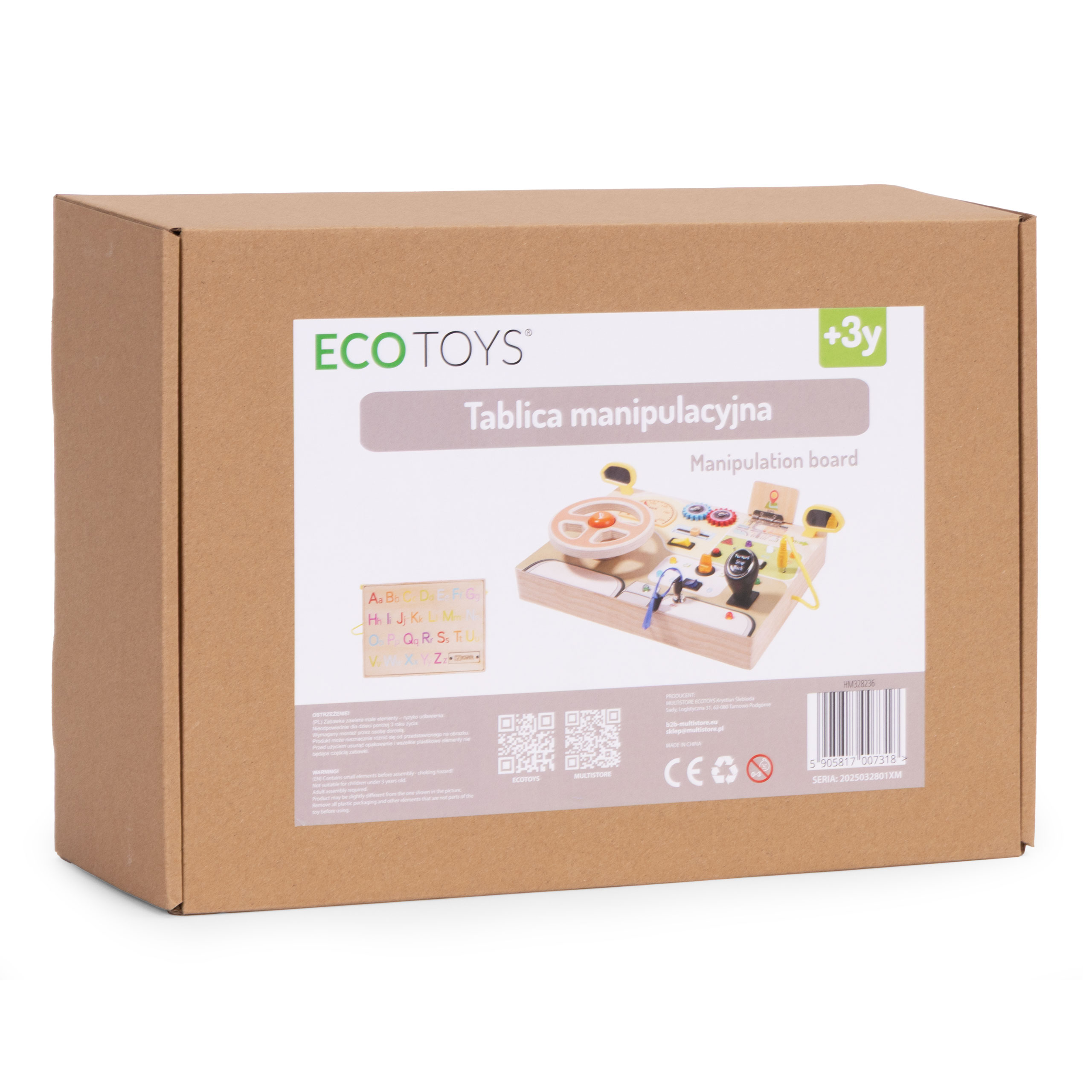 Drewniana tablica manipulacyjna LED Auto ECOTOYS – Interaktywna zabawa w kierowcę