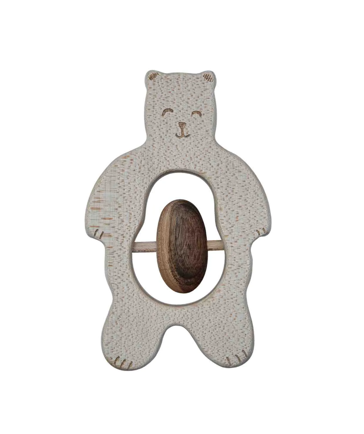 Drewniana grzechotka miś Wooden Story– naturalna grzechotka i gryzak w jednym. Wykonana z drewna FSC, nieimpregnowana, bezpieczna i ekologiczna. Rozwija zmysły i łagodzi ząbkowanie.