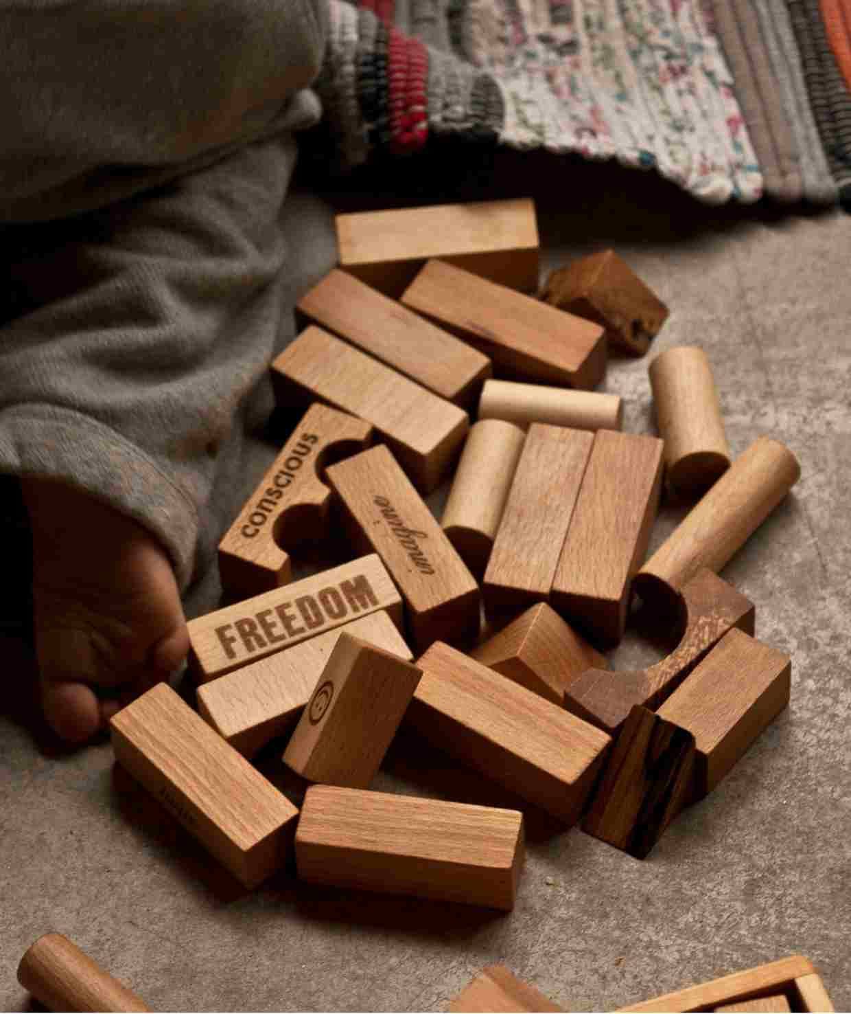 Drewniane Klocki Peace & Love Wooden Story to nie tylko zestaw do budowania, ale i narzędzie do nauki uważności, empatii i spokoju.