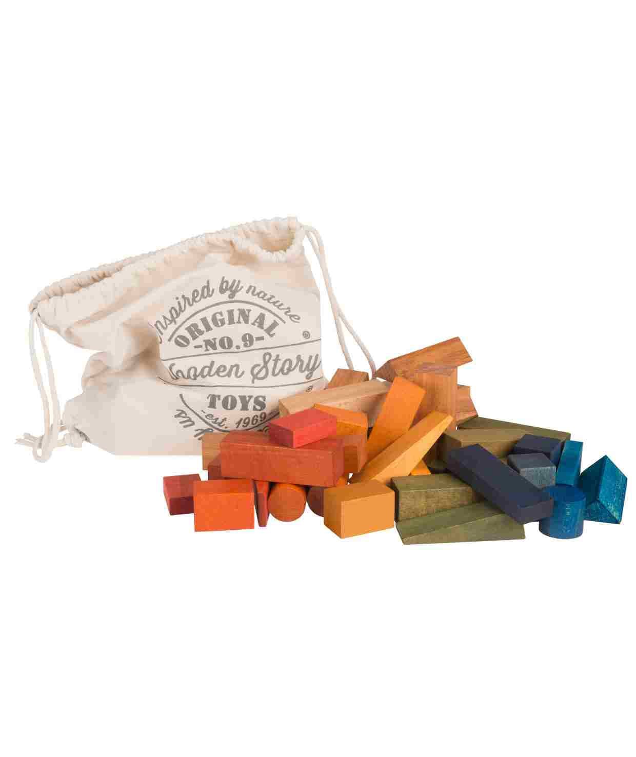 Drewniane klocki w worku kolorowe 50 el. Wooden Story – harmonia natury, koloru i wyobraźni
