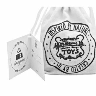 W zestawie znajdują się trzy ręcznie wykończone klocki z naturalnego drewna: